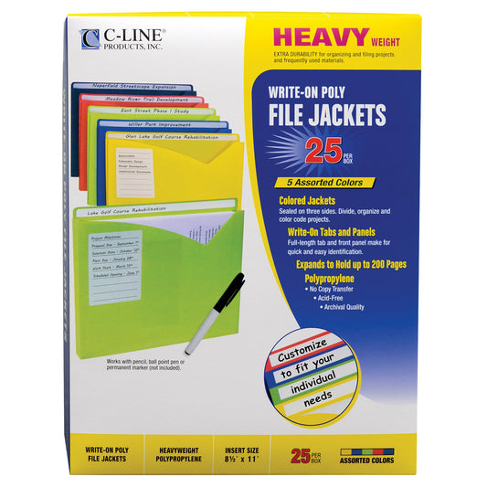 Write-On Poly File Jackets, Assorted, 11 X 8 1/2, 25/BX, 63060