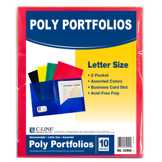 Two-Pocket Heavyweight Poly Portfolio Folder, Assorted Primary Colors, 10/PK, 32950