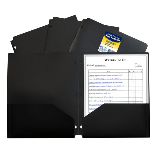 Two-Pocket Heavyweight Poly Portfolio Folder with Three-Hole Punch, Black, 1/EA (Set of 25 EA)