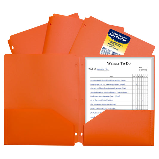 Two-Pocket Heavyweight Poly Portfolio Folder with Three-Hole Punch, Orange, 33932, 1/EA (Set of 25 EA)