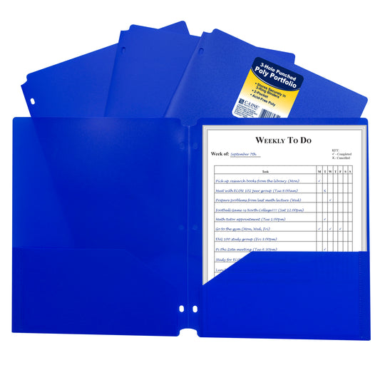 Two-Pocket Heavyweight Poly Portfolio Folder with Three-Hole Punch, Blue, 25/BX, 32935