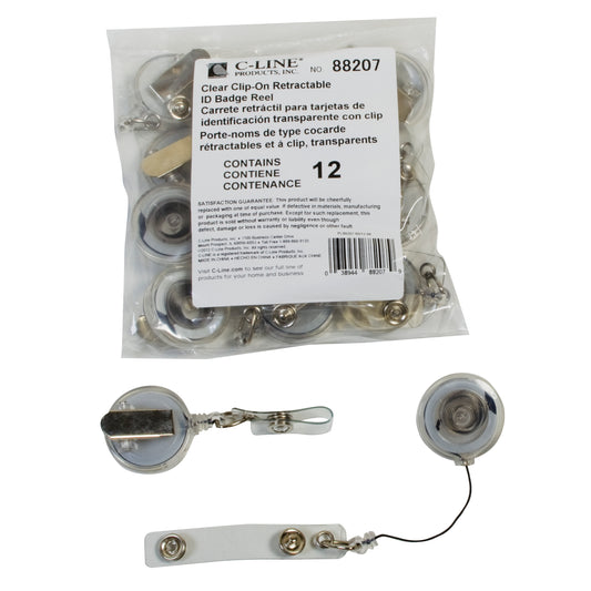 Clip-On Retractable ID Badge Reel, Clear, 12/PK, 88207
