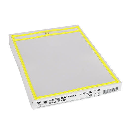 Neon Shop Ticket Holder, Yellow, Stitched, both sides clear, 9 x 12, 15EA/BX, 43916