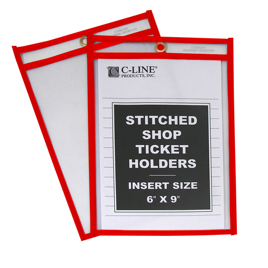 Shop Ticket Holders, Red, Stitched, both sides clear, 6 X 9, 25/BX, 43969