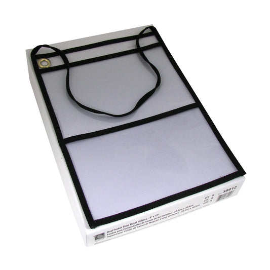Two Pocket Shop Ticket Holder w/ hanging Strap, Stitched, both sides clear, 9 x 12, 15/BX, 38912