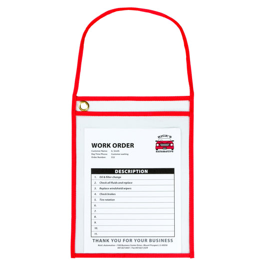 Shop Ticket Holder With Strap, Red, Stitched, both sides clear, 9 X 12, 15/BX, 41924
