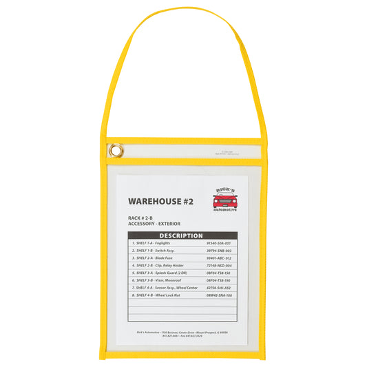 Shop Ticket Holder With Strap, Yellow, Stitched, both sides clear, 9 X 12, 15/BX, 41926