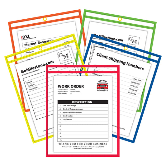 Stitched Shop Ticket Holder, Neon Assorted 5 color, 9 x 12, 25/BX, 43910