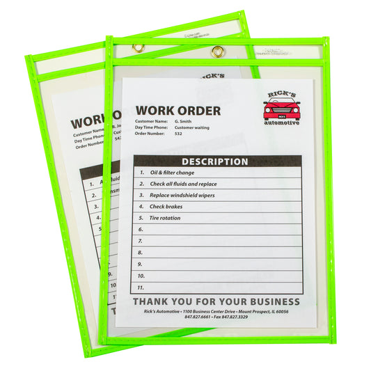Neon Shop Ticket Holder, Green, Stitched, both sides clear, 9 x 12, 15EA/BX, 43913