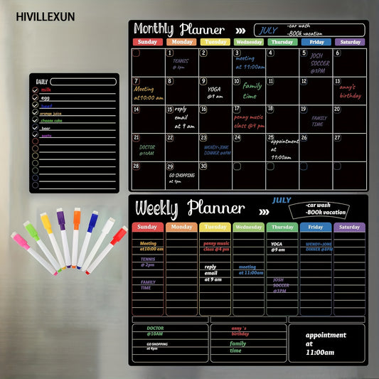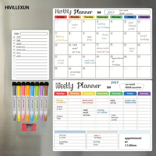 3-Pack Hivillexun Deluxe Magnetic Dry Erase Calendar Whiteboard Set