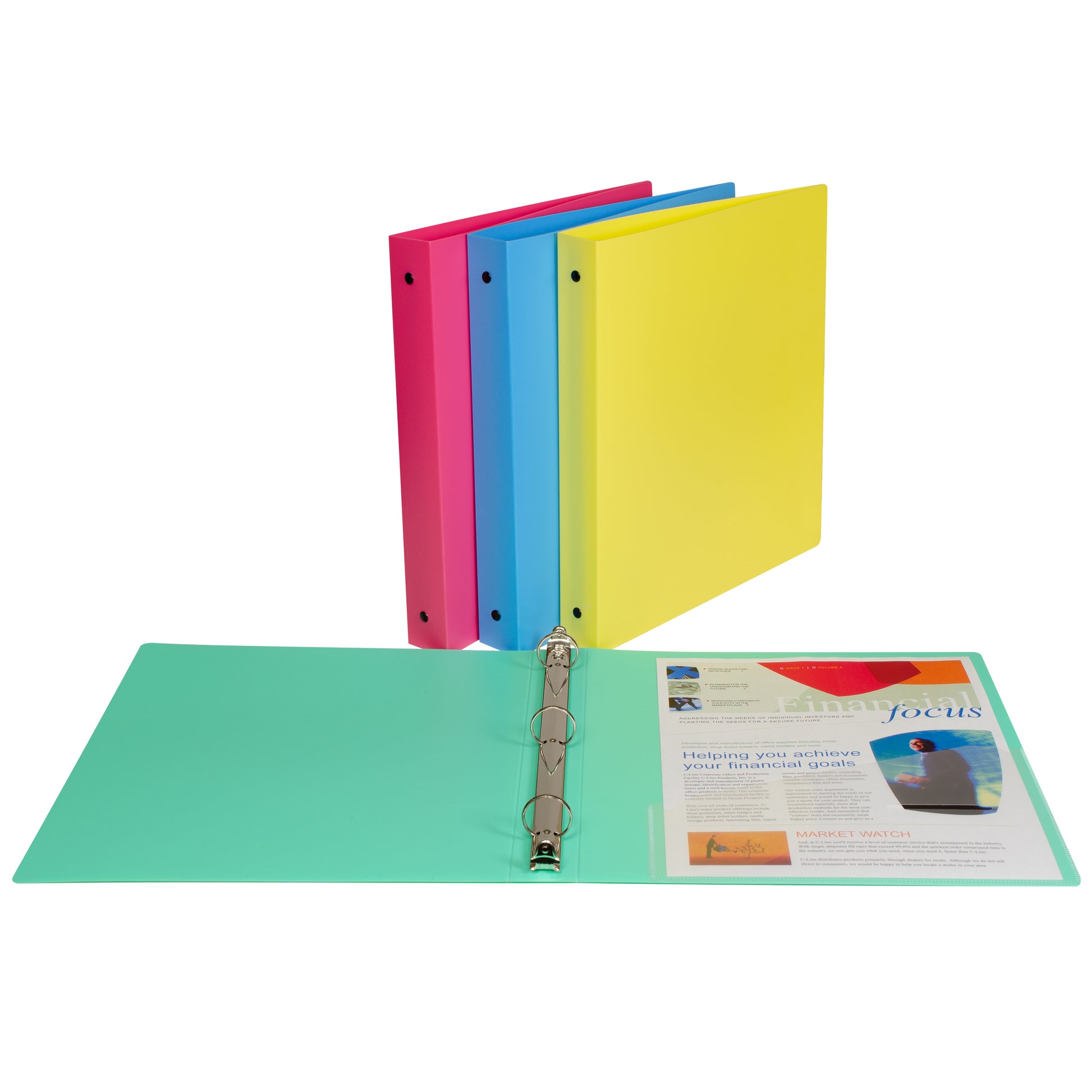 Durable polypropylene binders feature large interior pocket on the back cover for extra storage.