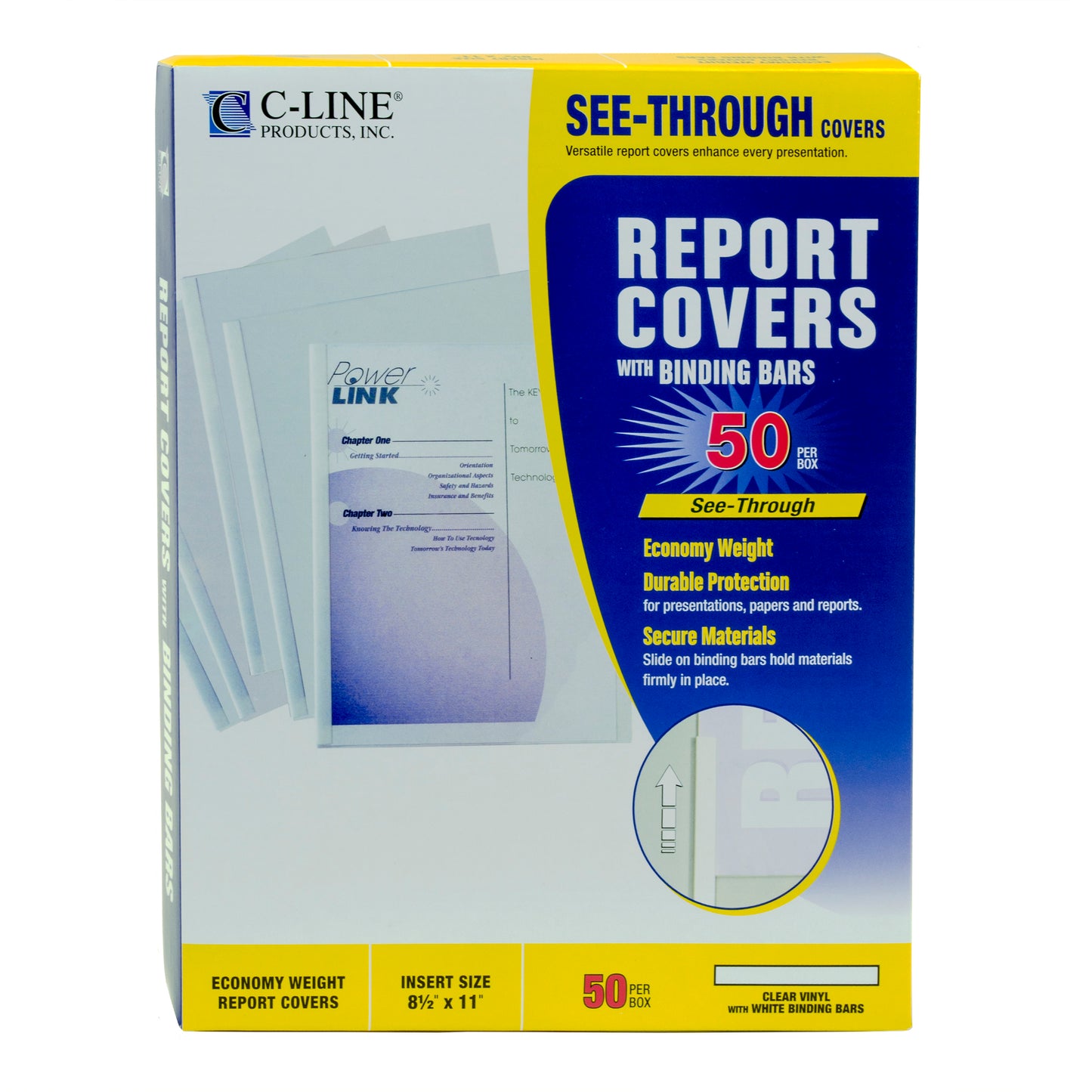 Economy Vinyl Report Covers with Binding Bars, economy, clear, white binding bars, 11 x 8 1/2, 50/BX, 32457