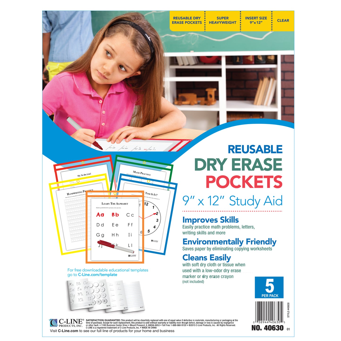 Reusable Dry Erase Pockets help to improve students' skills. Anyone can easily practice math problems, letters, writing skills and more.