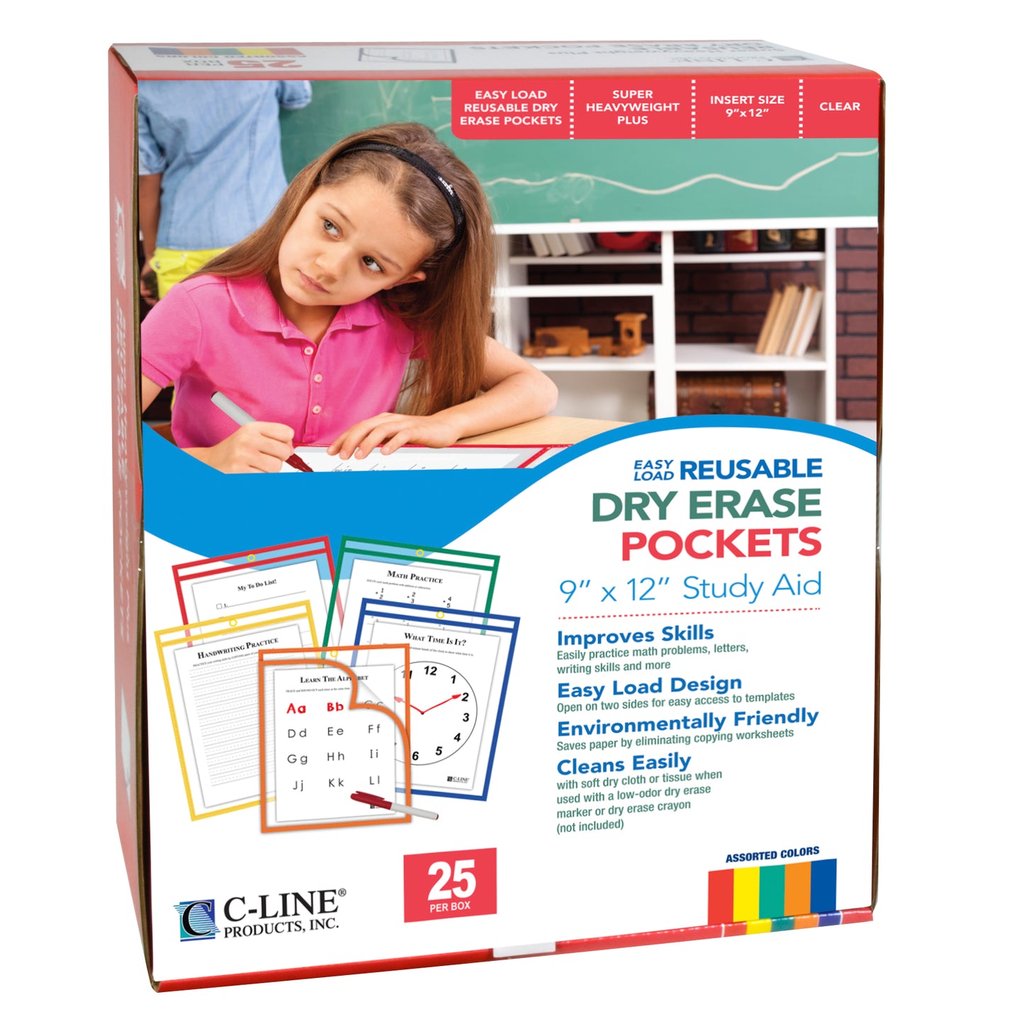 Super Heavyweight Plus Dry Erase Pockets stand up to daily use by students.