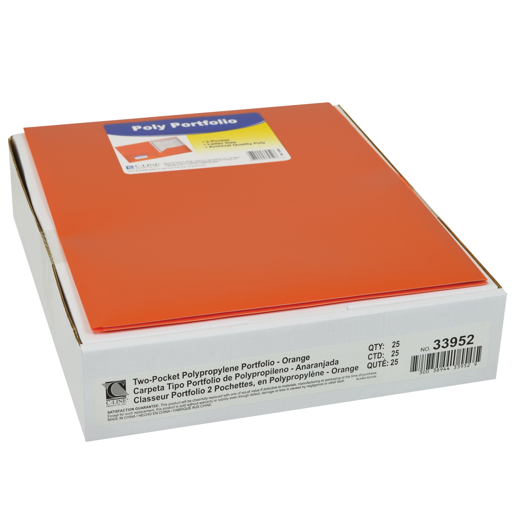 Two-Pocket Heavyweight Poly Portfolio Folder, Orange (Set of 25 Folders)
