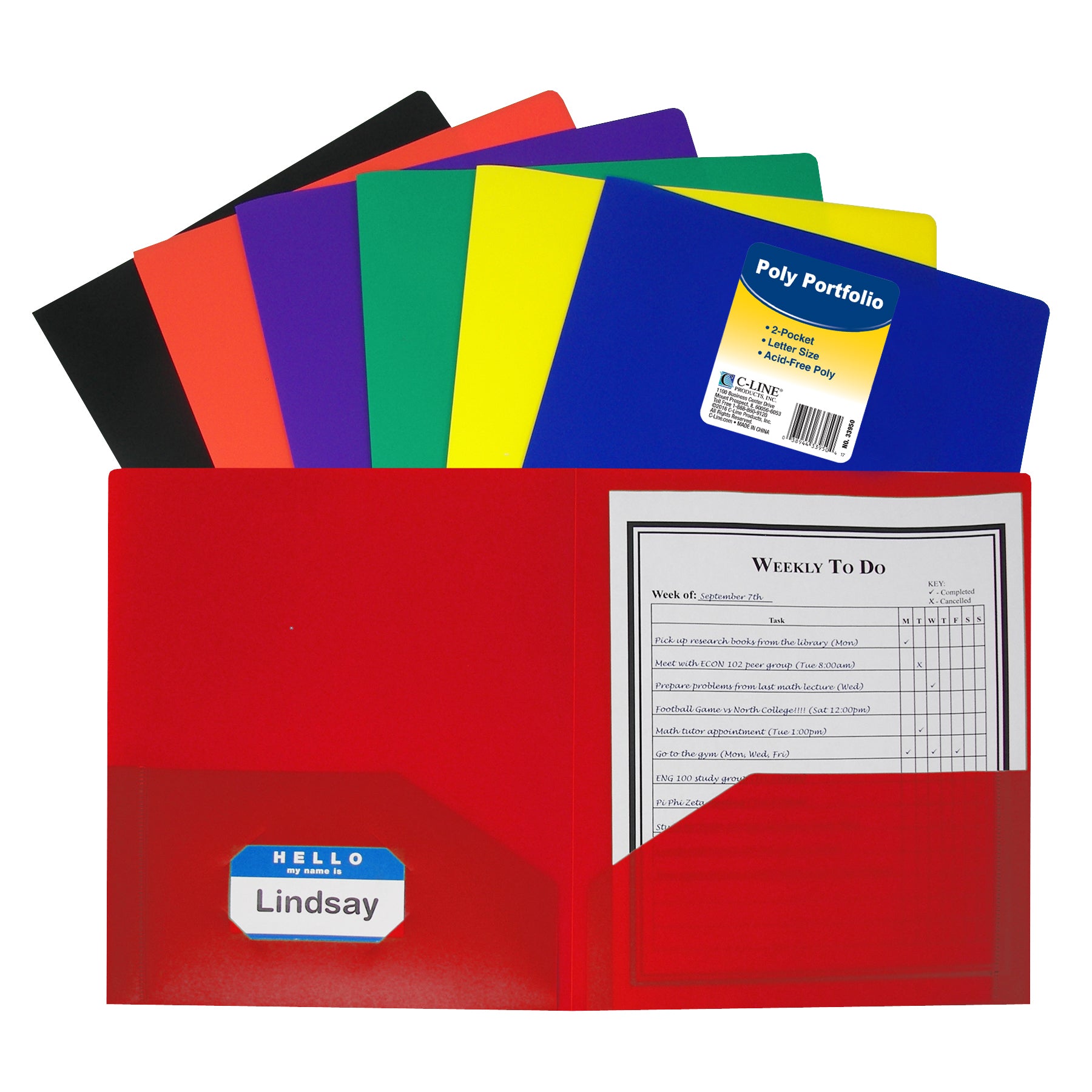 Two-pocket heavyweight polypropylene portfolios / folders hold papers and resist tearing.