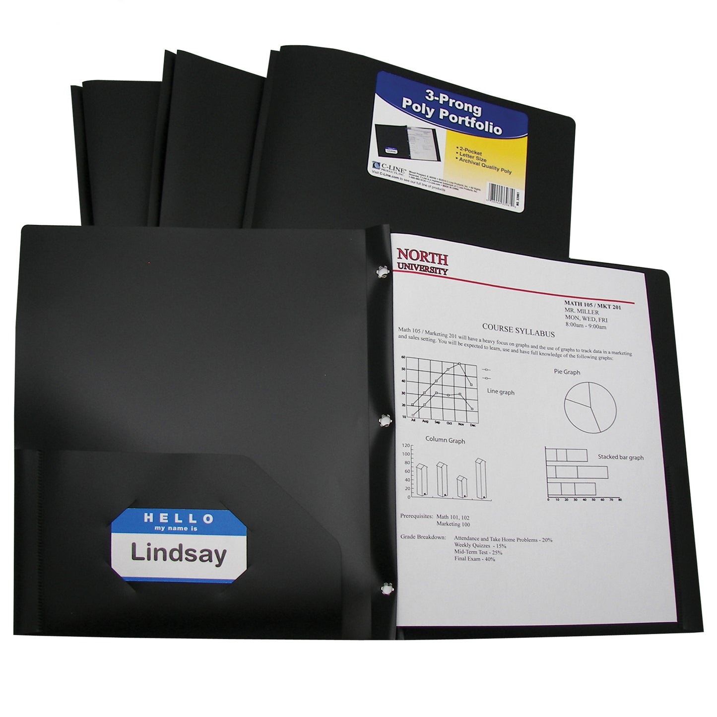 Two-pocket heavyweight polypropylene portfolios / folders hold papers and resist tearing.
