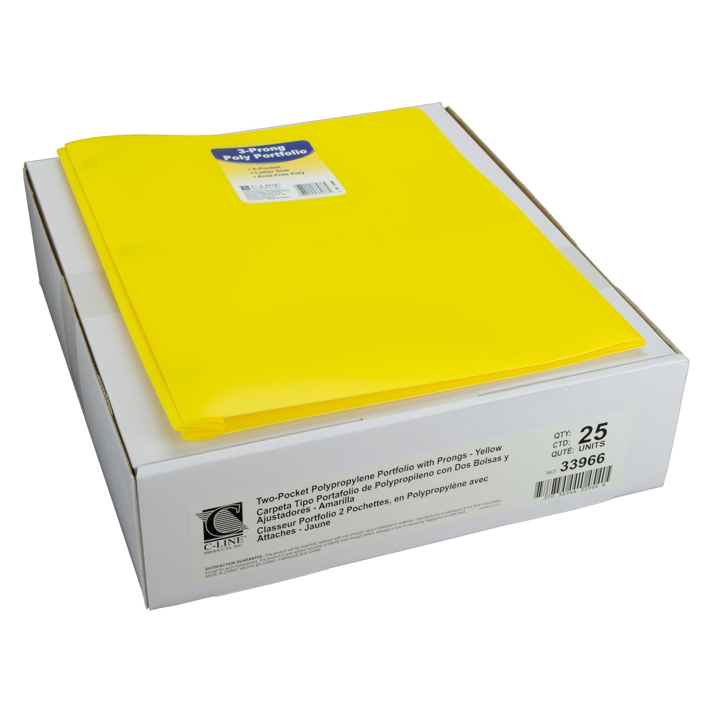 Two-Pocket Heavyweight Poly Portfolio Folder with Prongs, Yellow (Set of 25 Folders)